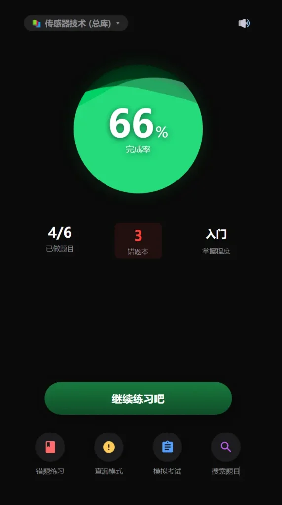 - 数据看板:一眼就能看到已做题目数量、错题数量以及当前的掌握程度(从“入门”到“精通”)。